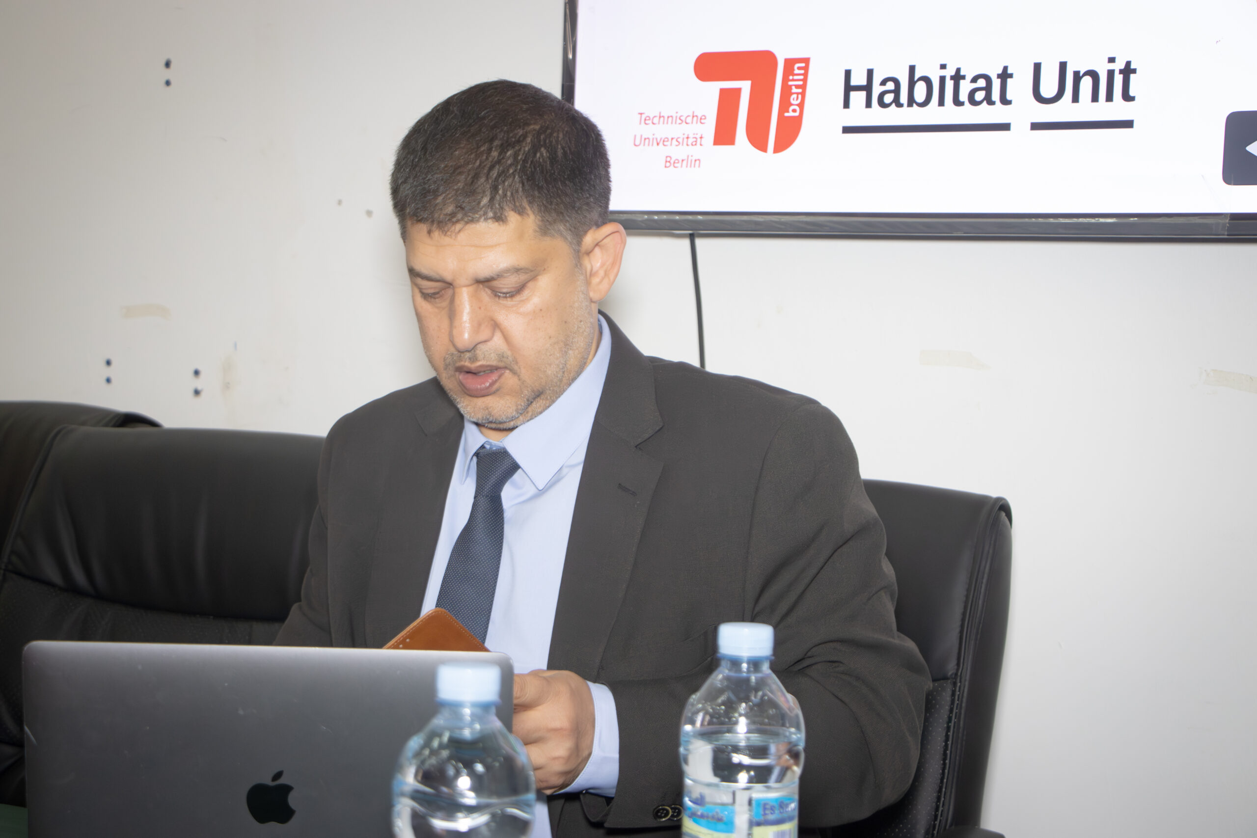 على الجانب الآخر من الحرم الجامعي، وفي كلية العلوم والتقنيات، انتقل النقاش من التاريخ إلى الواقع المعاصر، حيث ألقى الدكتور المهندس حسن المويلحي، من جامعة برلين التقنية، محاضرة حول مستقبل العمران في موريتانيا.